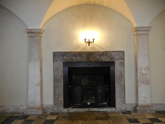 The two paintings above also show the interior with its arches, center stairway, and in the lower picture, a fireplace, which turned out to be rather important for the arrangement of the pictures.