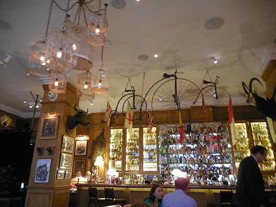 Always looking for a new London adventure, one night Victoria and I took Diane and her sister, Marilyn, to Mr. Foggs in Mayfair for a drink. Hidden away on Bruton Lane, there's no outward sign that an establishment of any sort is housed behind the Victorian facades that line the street. Up a few steps to the door, one has to knock in order to summon the door keep to slide the peep hole back. It's at this point that one is tempted to say something suitably snarky, such as "Rick sent me" or "Let us in, we'e got a fresh body for ye" or even "The password is Brummell." None of these are necessary as, unless one looks truly iffy, the door is typically opened to admit you into another world - the world of Victorian London and the townhouse of Around the World in 80 Days adventurer Phinneas Fog.