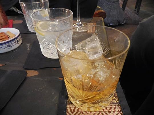And happy we were, as you can see by the photo below - drinks in a Victorian parlor, served up by attractive men in period uniforms . . . . . . bliss.
