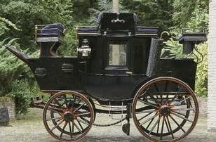 Ordered by the Royal Mews from Adams and Hooper for King William IV the Landau was delivered in 1835. The carriage would have been used by trusted representatives and possibly the King himself when undertaking long journeys. Other carriages and out riders would have formed part of the travelling entourage to carry luggage, servants and official documents. It is likely that the Landau was delivered with a detachable coachman's seat and hammer cloth, however over the course of time this has been lost. In its current configuration the Landau is arranged to by driven by postilion riders. It is uncertain why postilion riders came into being but one theory is that it allowed the occupants of the carriage to have 'open' conversations without fear of being overheard by the coachman. The Landau was sold by the Royal mews in the early part of the 20th Century. Following its sale from the Mews its history is uncertain but it was probably saved because of its 'Royal' history and provenance. Eventually it was acquired by the famous American collector James Coson and is featured in the book of his collection published in 1989, complete with a foreword from His Royal Highness Prince Philip. When the Coson collection was sold its new owner decided to restore the Landau to its original specification. The carriage was sent to the renowned restorers Stolk of Holland who over a period of time returned the Landau to its rightful former grandeur.