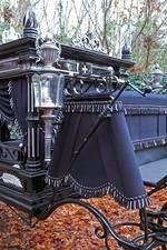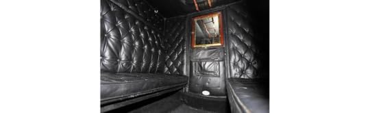Externally the solid timber hammer cloth and coachman's seat are upholstered in black wool cloth throughout. The coachman's toe board is fitted with a rubber mat. The roof features a decorated silver leaf urn that is fitted over a faux leather oil cloth covering. Original hearse lamps are fitted to the coachman's seat.