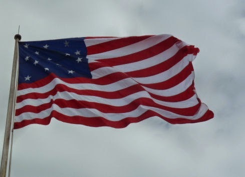 The U.S. Flag of 1814 flies over Fort McHenry.