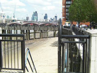 You can see the usual high water mark from the algae line in the photo above. I stood there gazing at this rare view of the River with it's beach exposed, recalling all I'd read about the long ago mudlarks. As I looked at St. Paul's Cathedral on the distant shoreline, my heart skipped a beat as I realized that this was one of those moments I'd remember always - to be able to, for a moment, at a distance of centuries - walk in the mudlark's shoes, to see the River as they'd seen it, to feel, as they must have done, as though I were somewhere I shouldn't be, doing something I shouldn't be doing, but compelled to carry on.