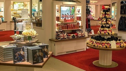Buckingham Palace Gate I travel for fun, to study history and biographies of famous people, to sort out the eccentricities of the natives and the visitors alike, and -- I admit it -- to peruse the gift shops wherever I go. Ordinarily I am not a very good shopper. To me, most shopping is in the ERRAND category, to be dispensed with quickly and with a minimum of fuss. BUT! Not so when I am in a museum...or a stately home...or a cathedral...or a palace...or in Liberty of London.