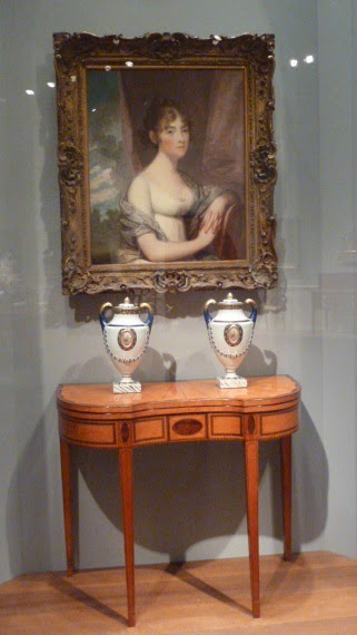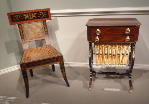 Victoria here. In 2013, I was delighted to have the opportunity to explore the newly installed collection of early American furniture in D.C.'s National Gallery of Art (the post is here). A few weeks ago, I went back for another visit. Historical fiction writer Diane Gaston and I love browsing through the galleries -- almost as much as we enjoy our luncheon in the charming Garden Café. In the distant background is the Gallery of the Kaufman Collection, which had to wait until we were well nourished.