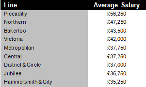 A survey of 1,000 working Londoners who spend the majority of their commute on the Tube found the average salary of someone commuting on the Piccadilly Line is £56,250. The Northern Line trails close behind at £47,250.