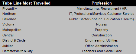 Mark Bull said: “Tube commuters are notorious for trying to create the illusion of their own private space, despite packed cars and it’s rare passengers glance up from their smart phones, iPods or newspapers with very few words spoken on a typical journey – if at all. On certain lines, if tube travellers did strike up a conversation they might just find that they have more in common with the person standing next to them than they might think. In fact, in many cases they could be heading to the same employer – which in some cases may explain the radio silence!”