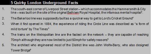 “It’s not all bad on the Northern Line though. Bank might have been voted the "Most Disliked" tube station in London – and Kennington might be haunted – but in terms of hard cash, the Northern Line is anything but The Misery Line”