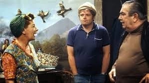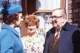 In the background in the photo above can be seen Hilda's "muriel," of which she's very proud. Geoffrey Hughes (Onslow in Keeping Up Appearances) played Stan's mate and petty criminal Eddie Yeats. You can watch a compilation of Hilda and Stan clips here.