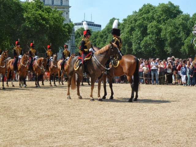 For a few weeks each summer, the Household Cavalry conducts a retreat for the members and the horses at the Norfolk seashore – which is the reason that in my photographs taken in July 2013, their substitutes, members of the King’s Troop Royal Horse Artillery take over, wearing their black ceremonial uniforms based on those of the Hussars at the Battle of Waterloo almost 200 years ago.