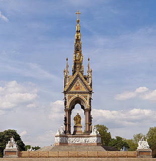 The Albert Memorial, Kensington Gardens, London, one of many memorials to the Prince Consort Not until 1871 did Queen Victoria begin to appear in public again. Rappaport writes, "...discontent escalated into outright republican challenges and calls for Victoria's abdication...when Queen Victoria attended a thanksgiving service at St. Paul's Cathedral" to celebrate the recovery of the Prince of Wales from an attack of typhoid fever, the disease which may have killed his father ten years earlier. From then on, public sympathy was recovered for the Queen and her son.