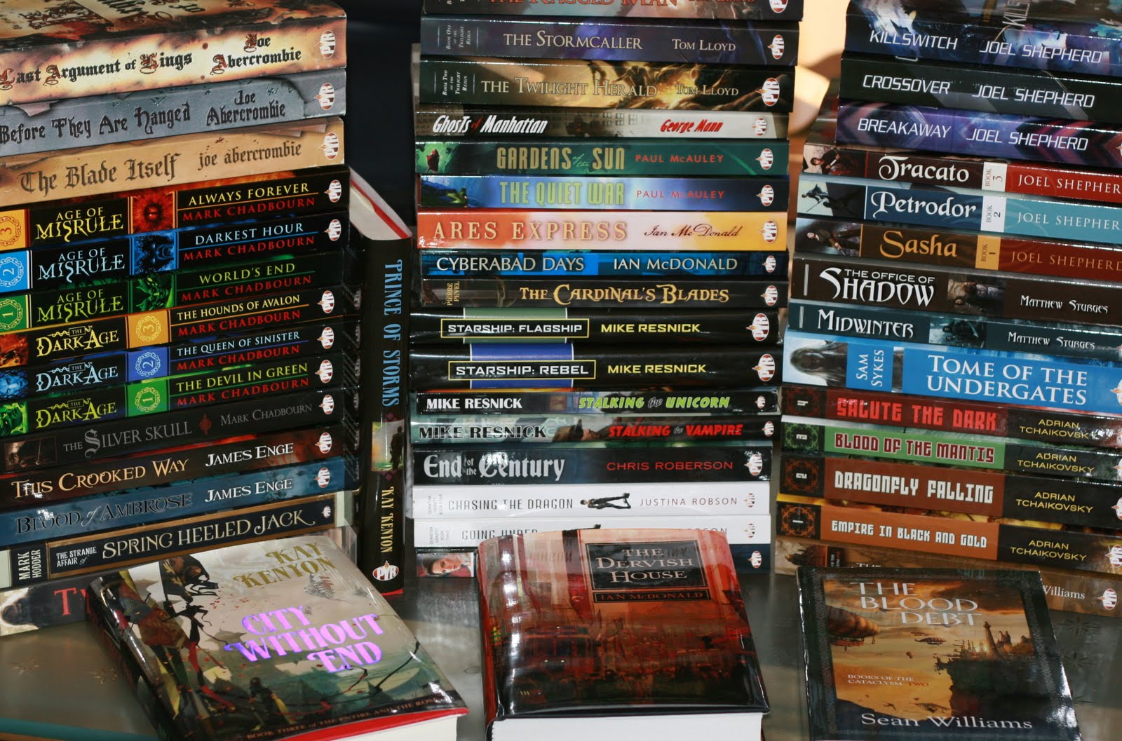 I've had the pleasure of hanging out with Lou Anders of Pyr, an imprint of Prometheus Books, at several conventions. Cool guy. Fun to be around. Bald. Passionate about sff and about promoting his authors. He was kind enough to put me on the mailing list to receive copies of his newly published titles.This means that for a few years now a steady stream of titles has arrived via UPS. I'm glad of it, too. Pyr's books have substantially padded out my bookshelves, and I've become familiar with a lot of writers that I had not known of before. The cool thing about this is that Pyr's authors are very much publishing, prolific, engaging folks, sometimes from overseas. Once I knew of them I began to see their work all over the place. It's just that sometimes you need that personal touch to get the name recognition locked in place. If that's what Lou was looking to accomplish with me he's succeeded. James Barclay, Mark Chadbourn, James Enge, Tom Lloyd , Justina Robson, Joel Sheperd, Adrian Tchaikovsky and many more: I will not forget you! Not to mention Joe Abercrombie, Kay Kenyon and Ian MacDonald, who were known entities but a very welcome additions to my library.