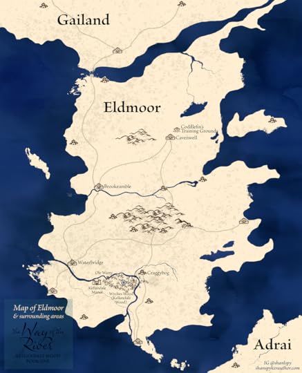The story takes place in an imaginary world with fictitious lands, and is set within Eldmoor—a country I envision to have overcome most human-related barriers to equality. In the story, the only social barrier that exists is unequal access to and control of education as it was my intention to write a hopeful story for a young audience that encourages kindness, compassion, open communication, recognizes and embraces diversity, and to inspire a desire to work with others to enact positive change. If you’ve read the story, I hope you enjoy seeing this world come to life in map form!