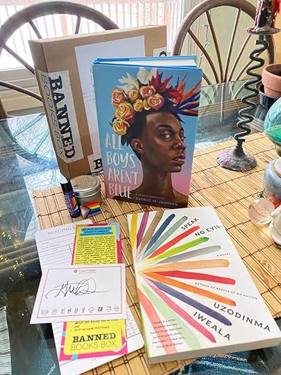 Banned Books Box’s January box, which includes George M. Johnson’s poignant, powerful and critical memoir-manifesto, All Boys Aren’t Blue, and Uzodinma Iweala’s equally important and impactful novel, Speak No Evil, both banned.