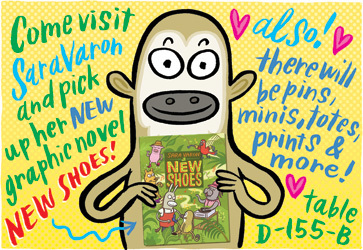 Hello! If you’re at MoCCA Comics Fest in NYC on April 6 & 7, stop by and visit! I’ll be at table D156-A, peddling books, zines, pins, and other handmade wares.