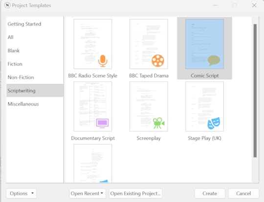 You'll see a bunch of script format options. Select "Comic Script" then hit "Create"