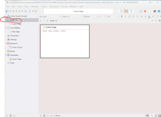On the left side of the screen, in the column with a folder-like structure and icons like "Comic Script Format" and "Front Matter", you'll see an object called "Draft 1.0", and underneath it, an object labeled "Comic Page". This is a 'sub-document' - a part of Draft 1.0.