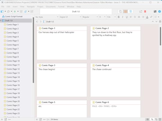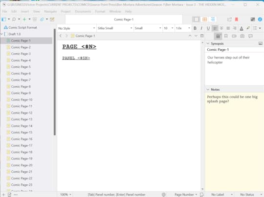One of my favorite ways to use Scrivener for comics writing is to actually create a separate sub-document for each page of my comic book or graphic novel.