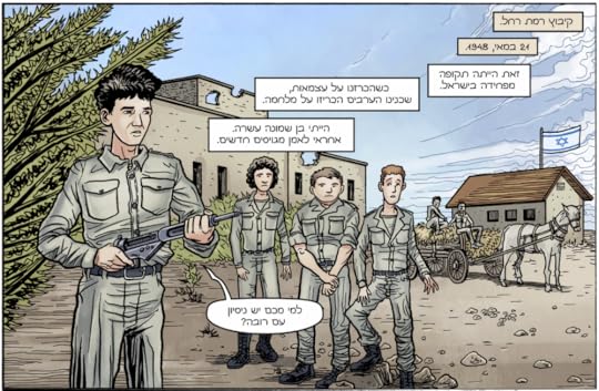 In fact, the three of us got together one afternoon and combed through the translation line-by-line. The translation was accurate as far as the individual meanings of the words went, but there were questions of tone and style that had to be addressed. This is where translation shifts from being a craft to being an art. In one panel, a caption reads, "Some of us ran out of luck" in proximity to an illustration of a dead soldier on the battlefield. Idiomatically, the literal translation simply didn't pack the same emotional punch in Hebrew. So, together, we explored different Hebrew idioms, and settled on something like "for some of us, this was the end of the story."