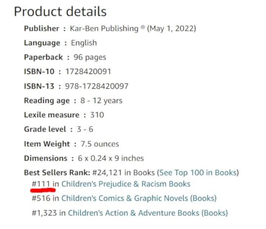 As pre-orders for my book are increasing, it's rising in the Amazon rankings. Yesterday, the paperback got close to cracking the top-100 in the "Children's Prejudice and Racism Books" category. So I got curious. What other books are in this category? Who am I sharing this space with?