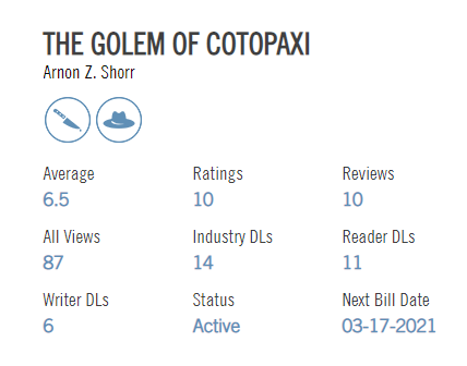 As you can see, with 10 evaluations, I've had this thing on the site for a while (and got the benefit of two free evaluations from an '8' score, plus a couple of other freebies for contributing to The Black List blog.)