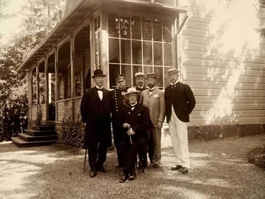 King Oscar (seated centre) at the Villa Victoria on Bygdøy Royal Estate.In the 1870’s and early 1880’s the King had repeatedly vetoed constitutional amendments passed by the Storting. Yet, royal visits from Stockholm continued regardless. In 1881 the King established-at the instigation of Christian Holst, who was manager of the Bygdøy royal estate-what was known initially as Oscar II’s Collection, a small group of historic buildings, taken from their original locations around Norway and rebuilt at Bygdøy. This collection was to be the forerunner of what would become known as the Norwegian Folk Museum. Another frequent visitor was Oscar’s eldest son, Crown Prince Gustav of Norway and Sweden. Gustav ventured to Norway in June 1877 during which he included a visit to Tromsø and the following year, he was accompanied on his trip by France’s Prince Imperial (the only son of Napoleon III) during which the royal duo enjoyed a stopover at Osebro.