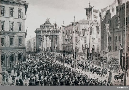 Crown Prince Gustav and Crown Princess Victoria enter Christiana in 1882The Liberal Party, elected in 1884, led by Johan Sverdrup, was focused on establishing a strong parliamentary system (and some would say a diminution of the royal prerogative powers). The government would also become increasingly concerned with strengthening Norway’s position on the international scene, particularly as the country’s overseas trade became vital to energising the economy. It was argued by those in the business and shipping sector that there were now too few consulates to support this increase in foreign trade. Following their re-election in 1891, the increasingly nationalistic Liberal Party government, now led by Johannes Steen, therefore took the view that Norway should have its own autonomous consular service. They made NOK 50,000 available for this purpose. But a rattled King Oscar (who had also got wind of the possible appointment of an autonomous Norwegian Foreign Minister) was intent on vetoing such attempts by the government and this led to a constitutional crisis. This was only (temporarily) resolved by putting aside the matter of the consular service for the present.