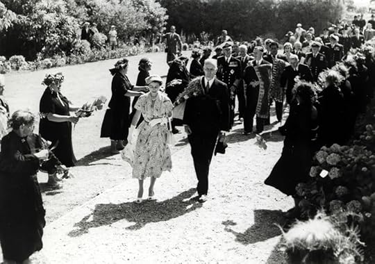The Queen attends a Garden Party 23 December 1953 Government House Auckland.The Queen arrived at Government House, where she would stay over the Christmas period, in time for luncheon. But there was to be no chance of a rest as the royal couple had to attend a garden party for 2,000 guests in the grounds. Both the Queen and the Duke spent over an hour chatting to invitees en-route to a roped-off enclosure, where they took tea and received yet more invitees.