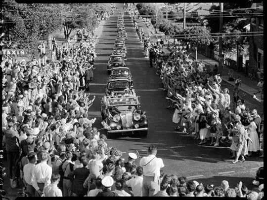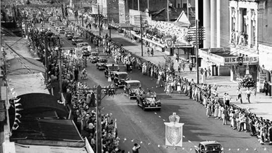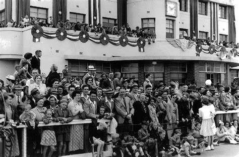 Around 10.30am on Wednesday 3 February, Queen Elizabeth II landed ashore in the Royal Barge at Farm Cove, Sydney to be greeted by the Governor-General, Sir William Slim, Her Majesty’s Official Representative in Australia. Elizabeth was the first reigning Sovereign to pay a visit to this far-flung kingdom which had such strong ties to the United Kingdom, for Australia’s population was largely composed of people who were descended from British stock or were recent settlers from that country. Her Majesty’s subjects were certainly ready to give the demure 27-year-old Queen a rousing welcome. Over 100,000 lined the shores around Sydney Harbour to witness the royal arrival. They almost immediately fell under her charm, as Her Majesty addressed her Australian subjects, observing that ‘I am proud indeed to be at the head of a nation that has achieved so much.’ When the Royal party departed Farm Cove to make a tour of the streets of central Sydney by car, it is estimated that 1 million people out of a city population of 1.86 million lined the route of the “Royal Progress”, with crowds as many as twenty deep at times. A particularly moving moment took place in Martin Place, where the Queen stopped at the Cenotaph to lay a wreath to commemorate Australians who had answered the call from the “Old Country” (as Britain was still referred to) and given their lives, whether this be at Gallipoli or during two subsequent world wars. An editorial in an Australian paper summed-up the events succinctly: “This day is one of the most momentous in our history.”