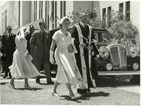 The following day, Princess Marina paid a four-hour visit to the British Exhibition. The objectives of the Exhibition (which complimented a “British Fortnight” currently being held in local stores and shops), was to demonstrate and strengthen the close ties which existed between Australia and Britain. After being greeted by Sir Peter Runge, the Chairman of the Exhibition, the Princess toured the Manufacturer’s Hall. Naturally, her visit caused much attention from the public. However, the press noted that despite officials panicking (and at one stage even threatening to close the exhibition during the royal visit) Her Royal Highness ‘resolutely refused to let a jostling crowd worry her.’ Instead, Marina ‘delighted the crowd with her off-beat charm,’ as she examined a pair of tables valued at £24,000 on the antiques stand of a local department store, Grace Brothers. Marina was also entranced by a Pye “manipulator” (a contraption with metal claws) which she learned could apply make-up to a lady’s face. For good measure, the Princess watched closely as the “manipulator” performed its magic, her face a study in concentration. Marina also found time to fuss over an infant who was determined to ‘see the Princess’. She also made the day of one elderly lady who asked if she would mind being photographed. Marina smiled and said “Of course not.” The only complaint came from the Princess’ security detail who said she was ‘very hard to keep track of.’ Marina’s tiring day ended with a “private” dinner given by the State Governor at Government House. However, a quick glance at the guest list reveals that her fellow diners were none other than an assorted group of local “worthies” including politicians (such as the Premier of New South Wales); members of the clergy (led by the Archbishop of Sydney); as well as the judiciary (the Chief Justice heading this section).