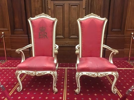 The new throne chairs specially commissioned for use at the State Opening.On 13 January, the Queen travelled up to the suburb of Thorndon to lay the foundation stone of a new cathedral to replace the current wooden edifice nearby. The rest of the day was spent at Government House where the Queen joined 4,000 of her New Zealand subjects at a Garden Party. Her Majesty also presided over a meeting of the Privy Council and of the Executive Council, the latter of which advised the Governor-General (the Queen’s representative) on State and Constitutional matters.