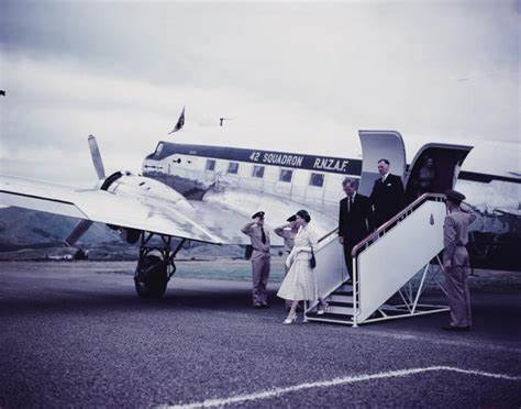 The RNZAF Dakota of 42 Squadron used to transport the Queen around New Zealand.