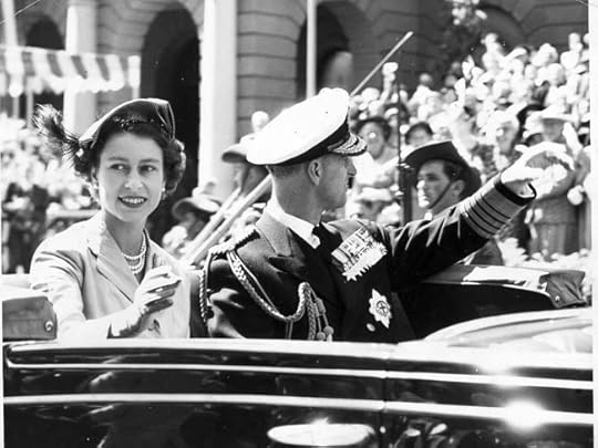 The Queen and the Duke of Edinburgh acknowledge the cheers from the crowds during their visit to Hobart.On 23 February, the royalties undertook a tour of much of the north of the island, flying by air to Wynyard in North Tasmania and driving through the towns of Burnie, Ulverstone and Devonport to Cressy, where the royal party spent the night on a sheep farm belonging to a Mrs O’ Connor. All along the route children were waiting to greet the royal cavalcade with bunches of flowers, flag-waving and the singing of patriotic songs. The following morning, the Queen and the Duke paid a visit to Launceston, the second largest town of the island, where they attended a civic reception and were feted by a crowd said to number 75,000.