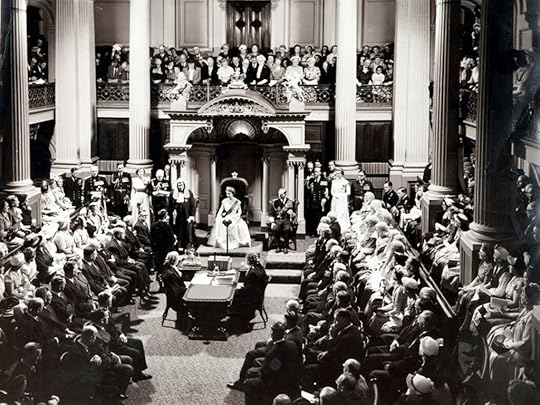 The Queen and Duke of Edinburgh enter Parliament for the “Royal Opening” on 12 January 1954