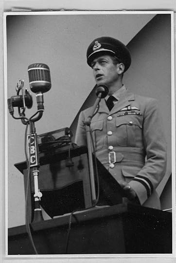 The Duke of Kent (“Air Commodore Kent”) in his RAF uniform making a speech in CanadaOn 27 August, Prince George returned to Canada to visit Hamilton, Ontario, where he was greeted by cheering crowds as he visited Westinghouse’s Electric Plant. Originally a small appliance factory, the facility had been re-tooled and expanded to produce anti-aircraft guns and other components, including many for the Mosquito Bomber. In the afternoon, he paid a visit to RCAF Hamilton (Mount Hope) and spent an hour reviewing No. 10 Elementary Flying Training School. Meanwhile, at Badminton in Gloucestershire, the home of the Duke of Beaufort, and temporary wartime residence of Queen Mary, Mackenzie-King was quizzed by the Dowager Queen about the Duke’s visit. Her Majesty had been following her youngest surviving son’s trip with great interest and showed the Canadian Prime Minister a selection of newspaper clippings, including one of Prince George at Rideau Hall with the Athlones. Mackenzie-King enthused that ‘some very fine movies’ had been made of the royal tour, although he also divulged that the Duke of Kent had informed him ‘that he never liked to see himself in a movie.’