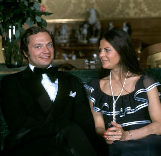 However, she was soon destined for higher responsibilities and oversaw the training of Official Hostesses for the Olympic Games which took place in Munich in 1972 from August until September. During the event itself she acted as Chief Hostess and interacted with many of the VIP’s who attended. It was during these games that she met Crown Prince Carl Gustaf of Sweden in the VIP room. It was, she recalled, a ‘particularly amusing’ encounter as Carl Gustaf was observing her through binoculars, even though she was standing only one metre away from him! Something must have clicked for the Crown Prince invited her to attend a private family dinner attended by himself, his uncle Prince Bertil, the latter’s future wife Lilian Craig, the Crown Prince’s older sister Princess Birgitta and her husband Prince Johann Georg of Hohenzollern-Sigmaringen. The dinner seemed to go without a hitch and soon Carl Gustaf and Silvia were dancing the night away at a local night club, Kinki. The couple were to keep in touch by phone, just as Carl Gustav was about to face many major changes in his life.