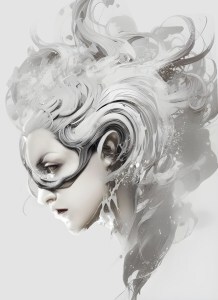 This was my first attempt at Stable Diffusion, used via nightcafe. Started with a personal thumbnail sketch photographed and desaturated. Did some post-processing to fix some features of the face in Affinity Photo. Might use it for Eysin’s cover sometime – that is if I can generate in a similar style for the upcoming volumes, as well
