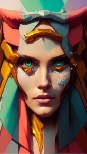 Generated this colorful lady from internet artwork that already had a face – although it was a stone and looked quite male, no post-processing done.