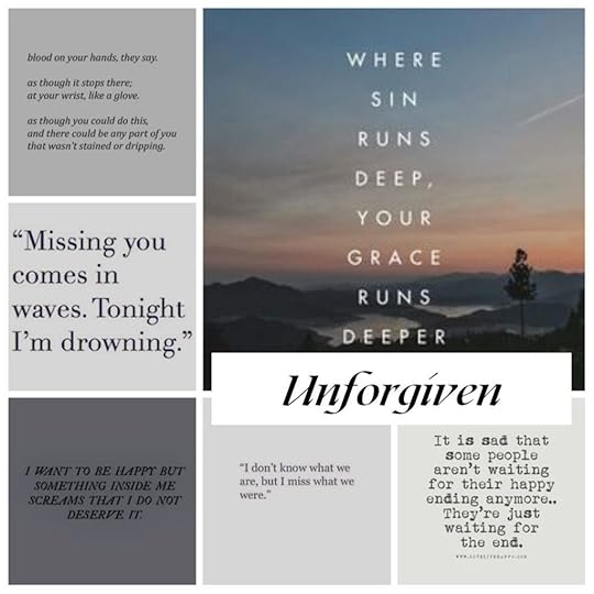 As I’ve been working on the Pinterest board and overall aesthetic of Unforgiven, I’m always struck by how dark it looks. I promise it’s not completely as gritty and painful as it looks (though there is plenty of that there.) But overall, struggles with darkness, guilt, a failed marriage, and discontent. Sounds fun, huh? But not featured in this image is the hope and peace that comes in later parts of the book – just no spoilers in the pictures here.