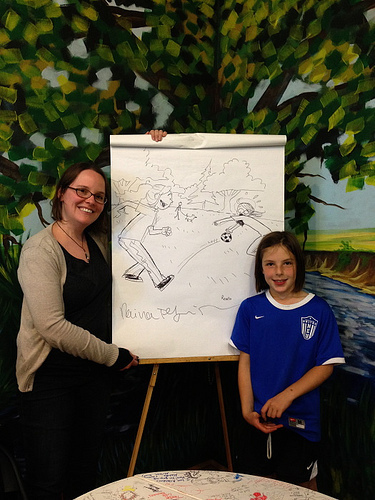 Renata, who helped me draw the soccer ball, at A Children’s Place bookstore, Portland.