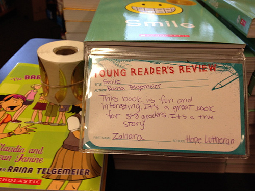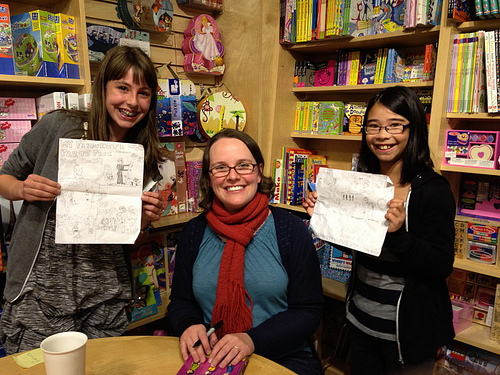 The past week was a fast-paced tour of schools and bookstores all over the bay, with my friends and fellow Graphix authors Doug TenNapel and James Burks! We had a blast, visiting at least one (and sometimes two!) bookstores each day, and visiting seven schools in all! I got to meet so many wonderful new people, and even had some time to visit my favorite spots in the bay. (I was our driver for the week, which meant I could detour to the best burrito places.)
