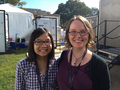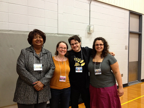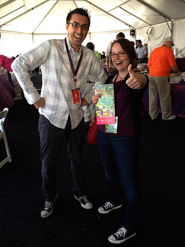 Ava, who struck me immediately as a living embodiment of Callie, exactly how I picture her in my mind…except with blue hair instead of purple! She was helping direct the crowd at her school, totally professional and helpful; part of the drama club; AND a comics fan. Thanks for taking this picture with me, Ava!