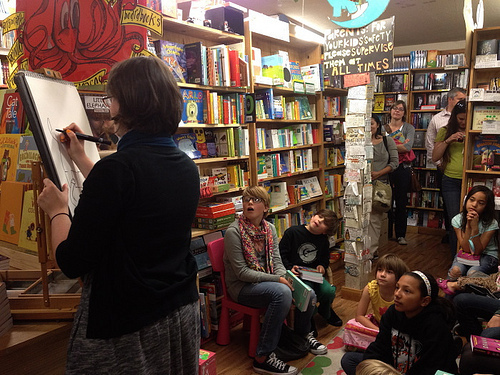 Drawing the crowd’s suggestions at Green Apple Books in San Francisco