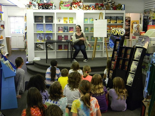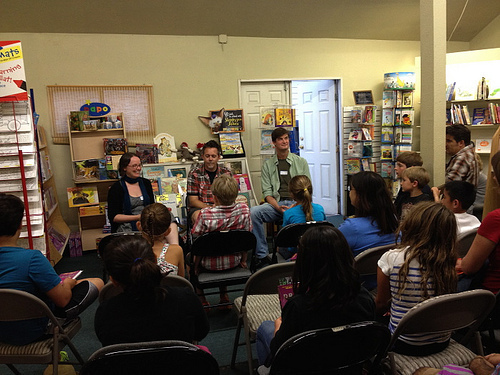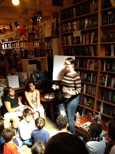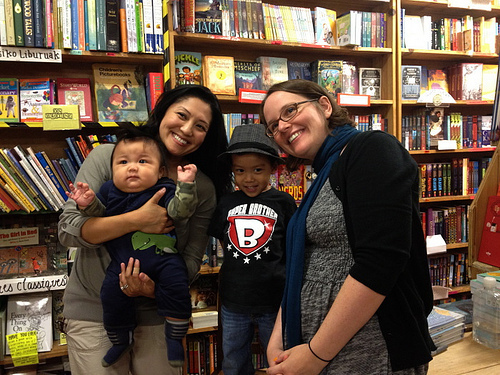 Me and Theresa (from SMILE, remember?) with her delightful kids at Green Apple Books