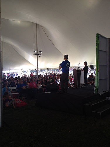 School visit, St. Louis. We found this speaker exactly like this, and the bookseller used it to set up the stock!