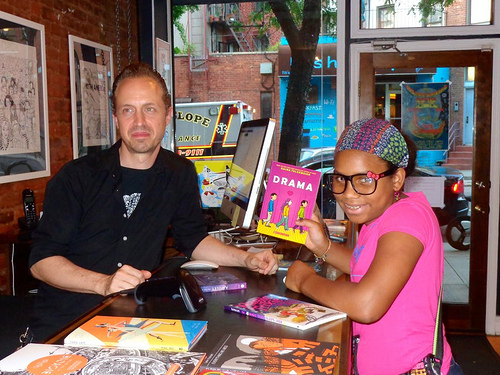 Annalisa D’Aguilar! Annalisa wins a piece of original artwork featuring the characters from DRAMA! This photo was taken at my favorite local comic store, Bergen Street Comics–check out the other awesome comics Annalisa is purchasing!