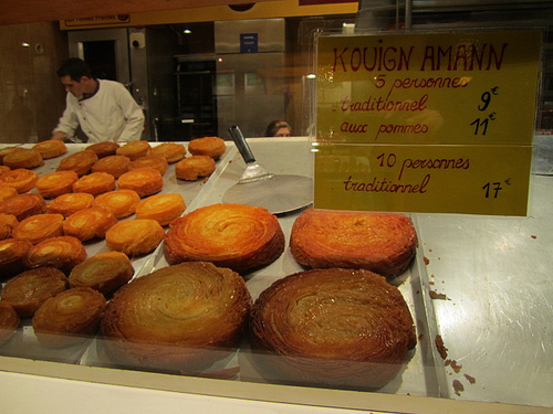 Dave and I fell unabashedly in love with a particular Breton pastry we'd never heard of before: kouign-amann (sounds like, Queen Yaman). They're everywhere in this city, but it took us till Saturday to actually try one. After that it was all we wanted to eat, and we're still talking about it.
