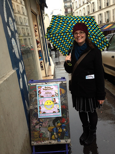I was especially stoked to see two of my friends, Erika Moen and Matt Nolan, who live in Portland but were traveling through Paris en route to Strasbourg. Nothing like seeing familiar faces in a strange land!! Thank you, Matt and Erika, for making time to come and see me on a rainy day.