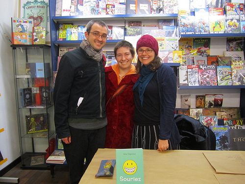 On Tuesday I did a lovely signing at the fantastic Arkham Comics! They specialize in American comics, and have been big supporters of Smile since it came out last year. I got to meet a bunch of my kind and eloquent readers there, as well as hang out with the store owners: Philippe and Philippe! They took us out for our best meal in Paris before the signing, and when we got back to the store, things were busy!