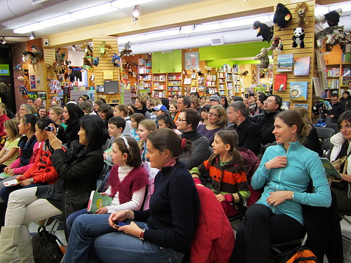 In Vancouver, I was lucky enough to give a presentation and booksigning at the amazing independent kids bookstore, Kidsbooks. It was an event that people had to buy tickets for, so I wasn't sure what to expect–but the event sold out, and 120 people came to see me!! So many wonderful kids and their parents. And such a beautiful store! I gave a short talk, did some drawing, and then signed and signed and signed. I was also surprised to see the French-Canadian edition of Smile that Scholastic Canada put out: Souris! And delighted that quite a few people wanted to own the book in both English and French. What a perfect evening. Thanks a million to Phyllis Simon and her brilliant staff for hosting me.